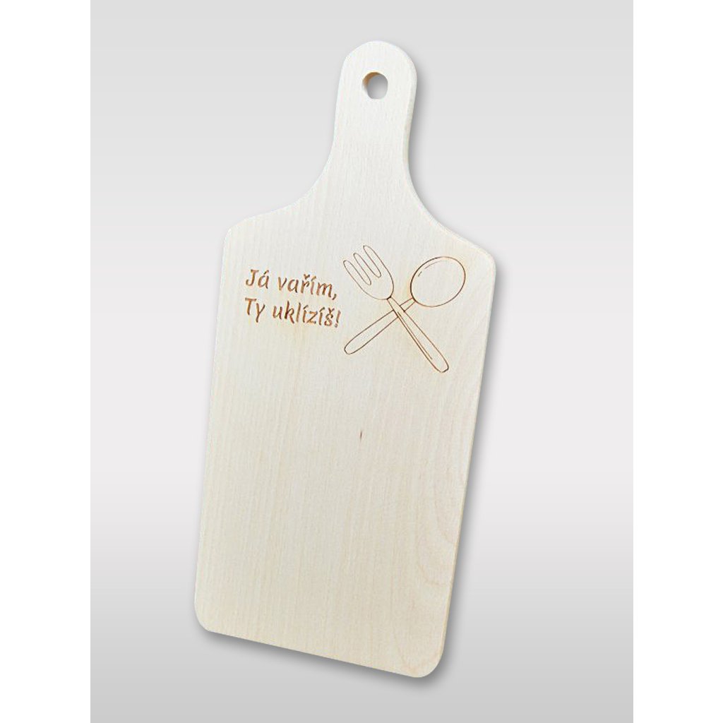 Bukové prkénko Já vařím, ty uklízíš - 32 x 14 cm